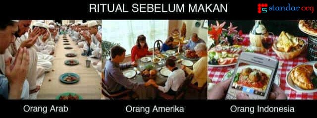 Namun berbeda dengan negara lainnya, di Indonesia ada yang tidak lazim, mereka rata-rata mengabadikan makanan dan disebarkan ke media sosial yang saat ini begitu mempengaruhi kehidupan orang banyak. Sebenarnya bukan tanpa alasan mereka melakukan hal yang sepertinya "tidak penting" itu. Mereka ingin mengatakan kepada "dunia" bahwa mereka saat itu sedang dalam keadaan senang, mengabadikan moment mereka yang suatu saat bisa dijadikan kenangan.